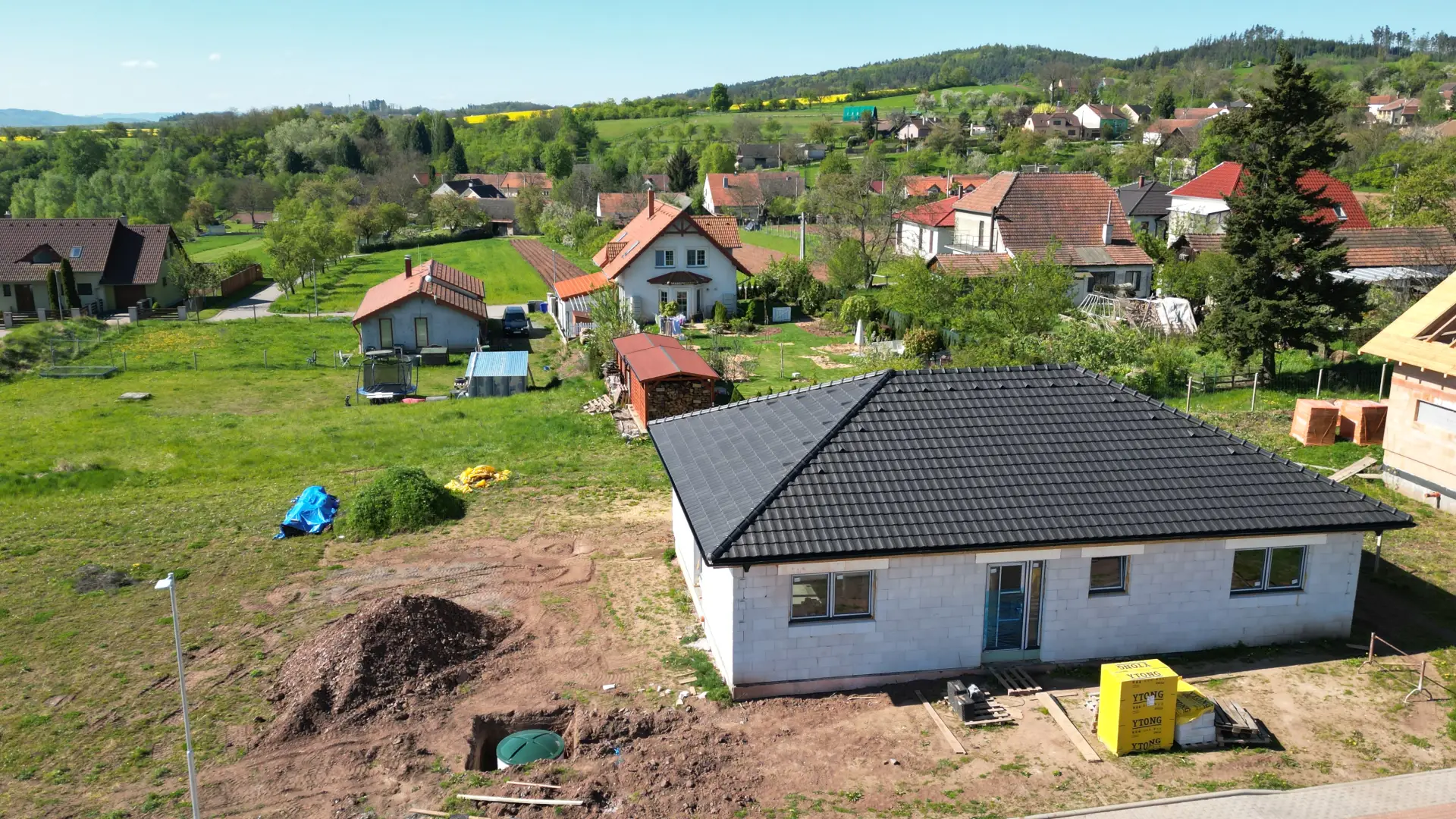 RD je opatřen velmi kvalitními plastovými okny a dveřmi . Střešní konstrukci tvoří pálená taška TONDACH.
