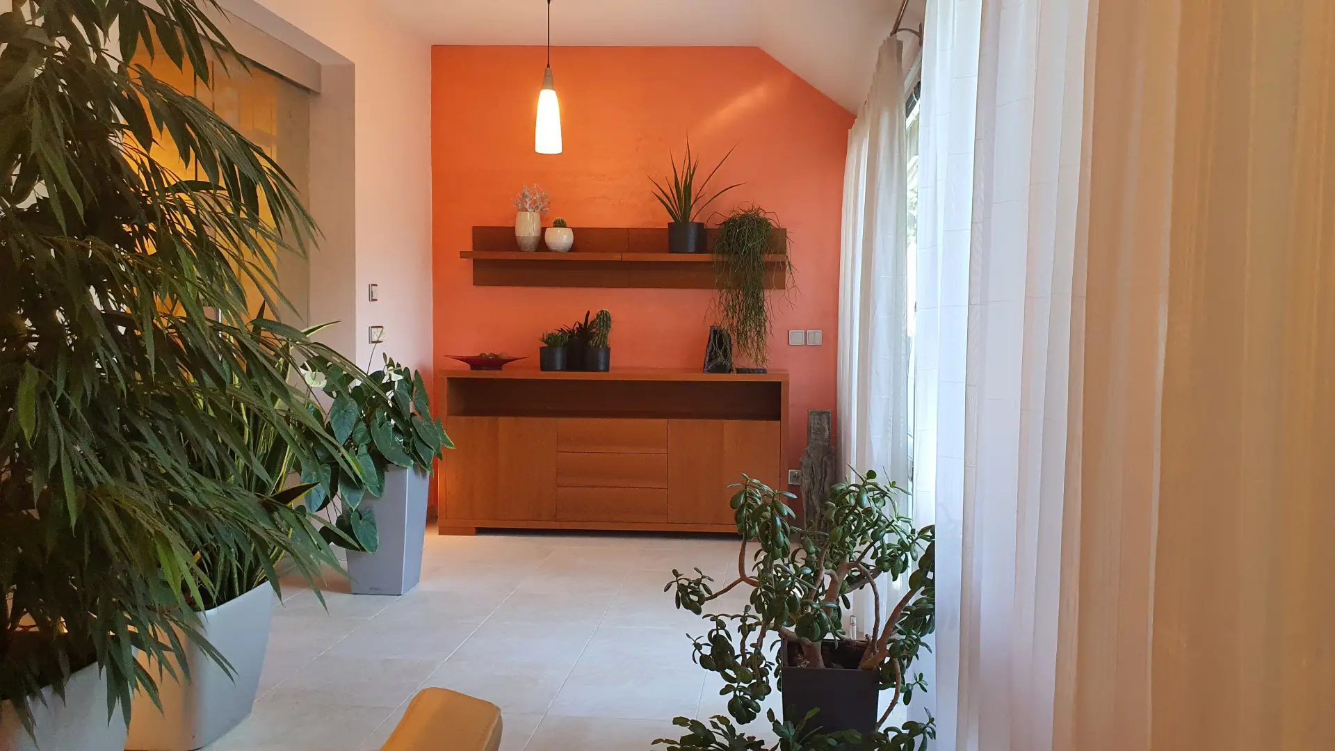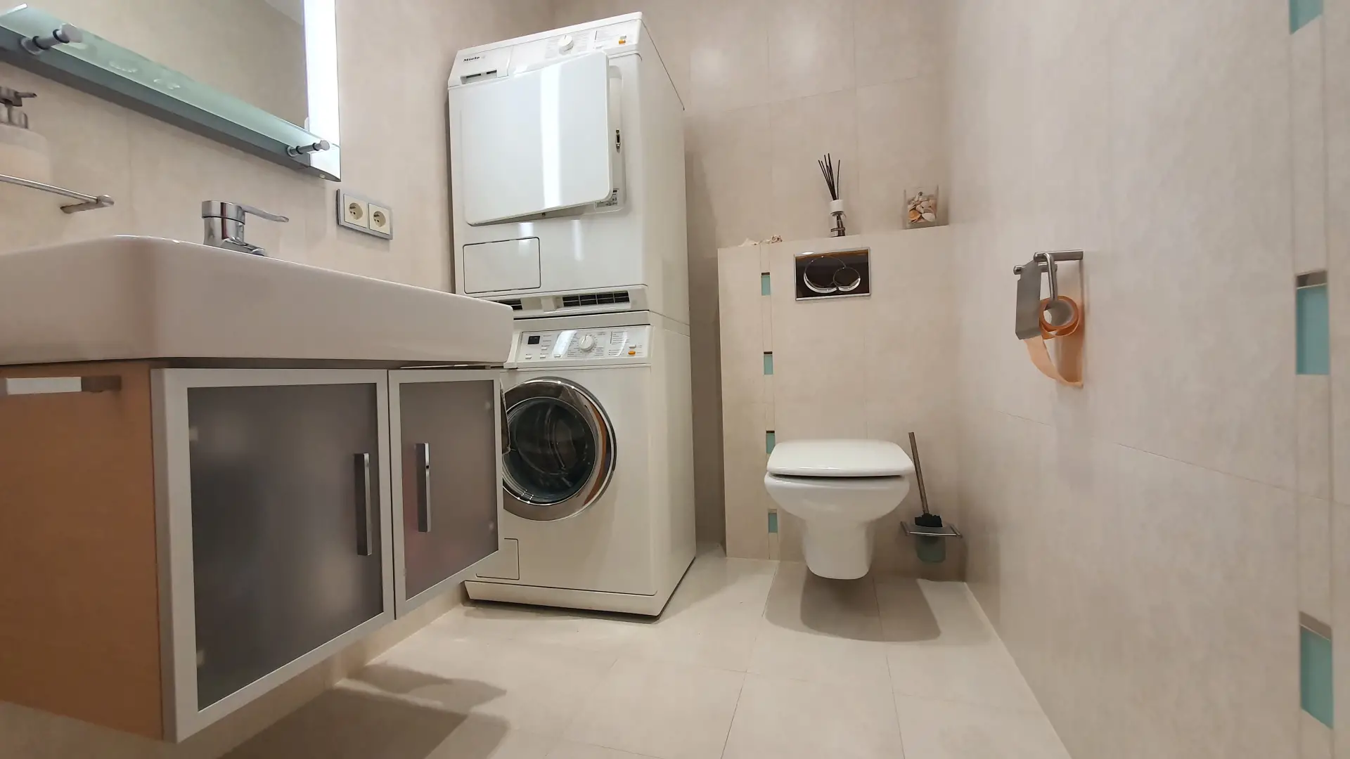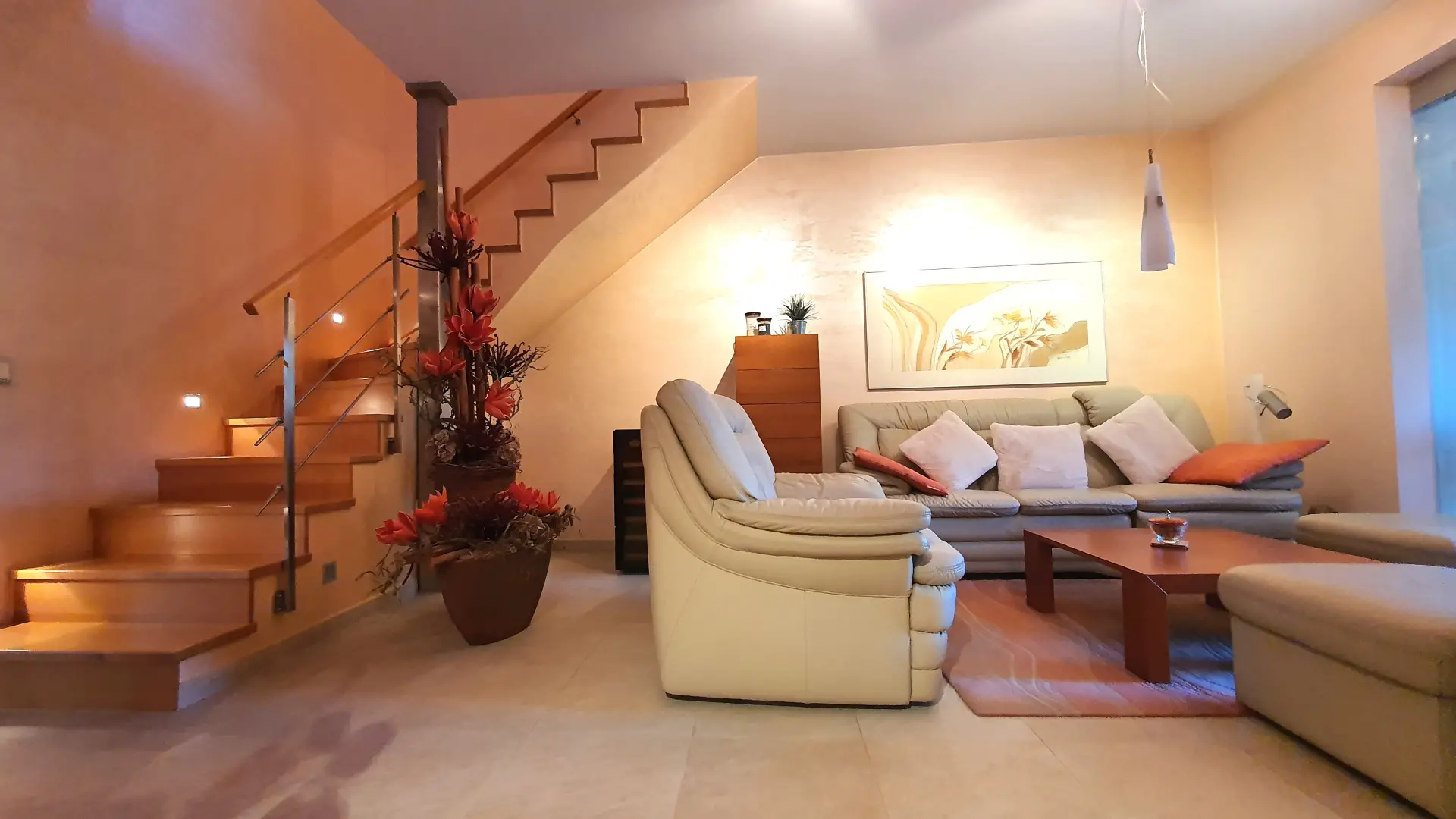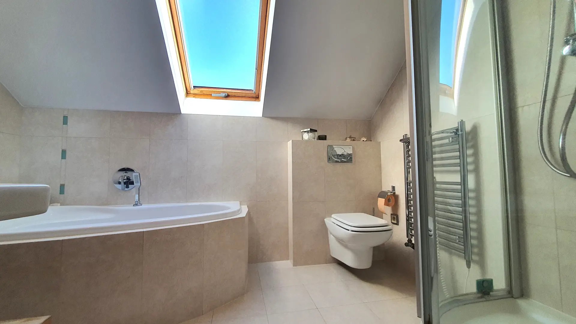 V celém přízemí je položena dlažba s elektrickým podlahovým vytápěním.