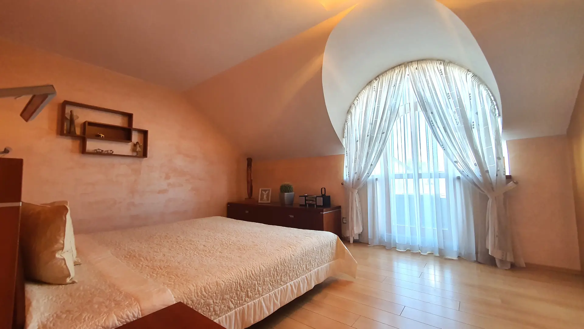 Ve 2. NP se nachází dva pokoje, ložnice se šatnou a balkonem a pracovna, Dále je zde prostorná koupelna s vanou, sprchovým koutem a WC.