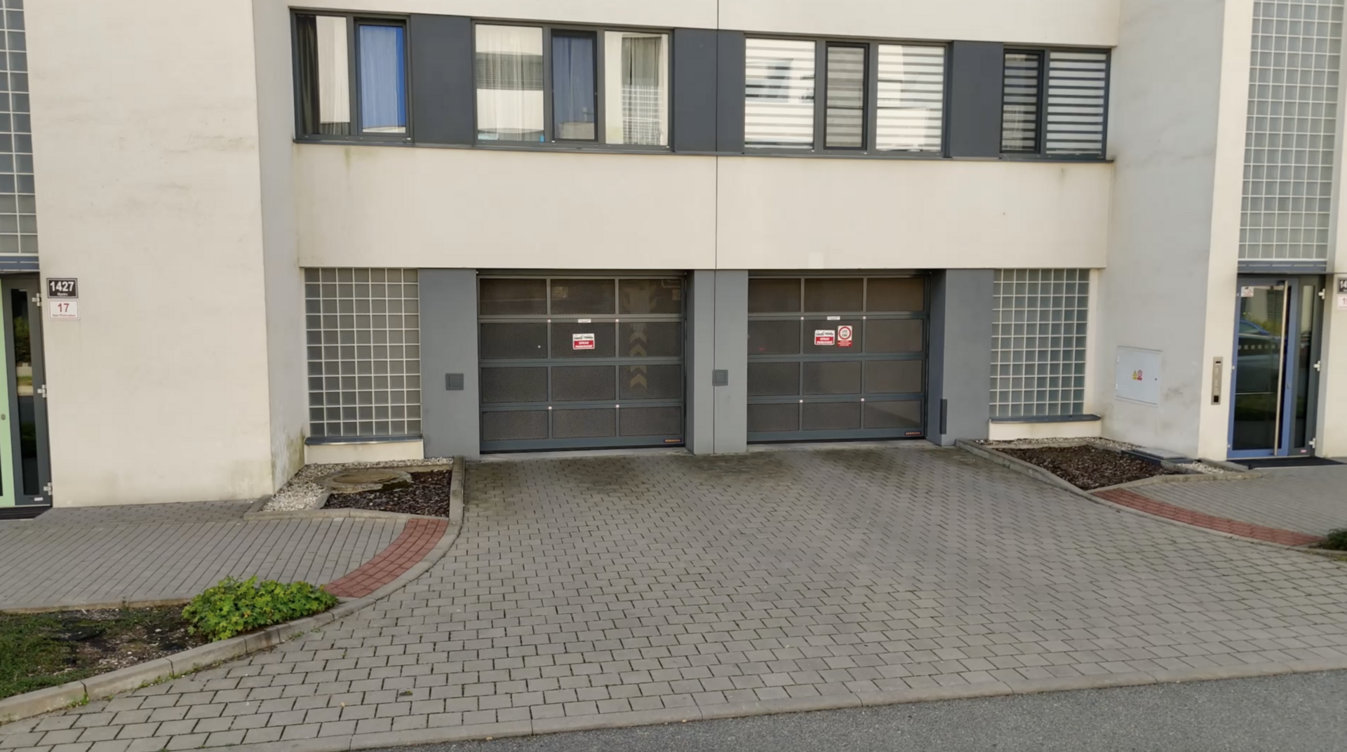Parkovací stání se nachází v přízemí bytového domu s elektrickou vjezdovou bránou s dálkovým ovládáním.