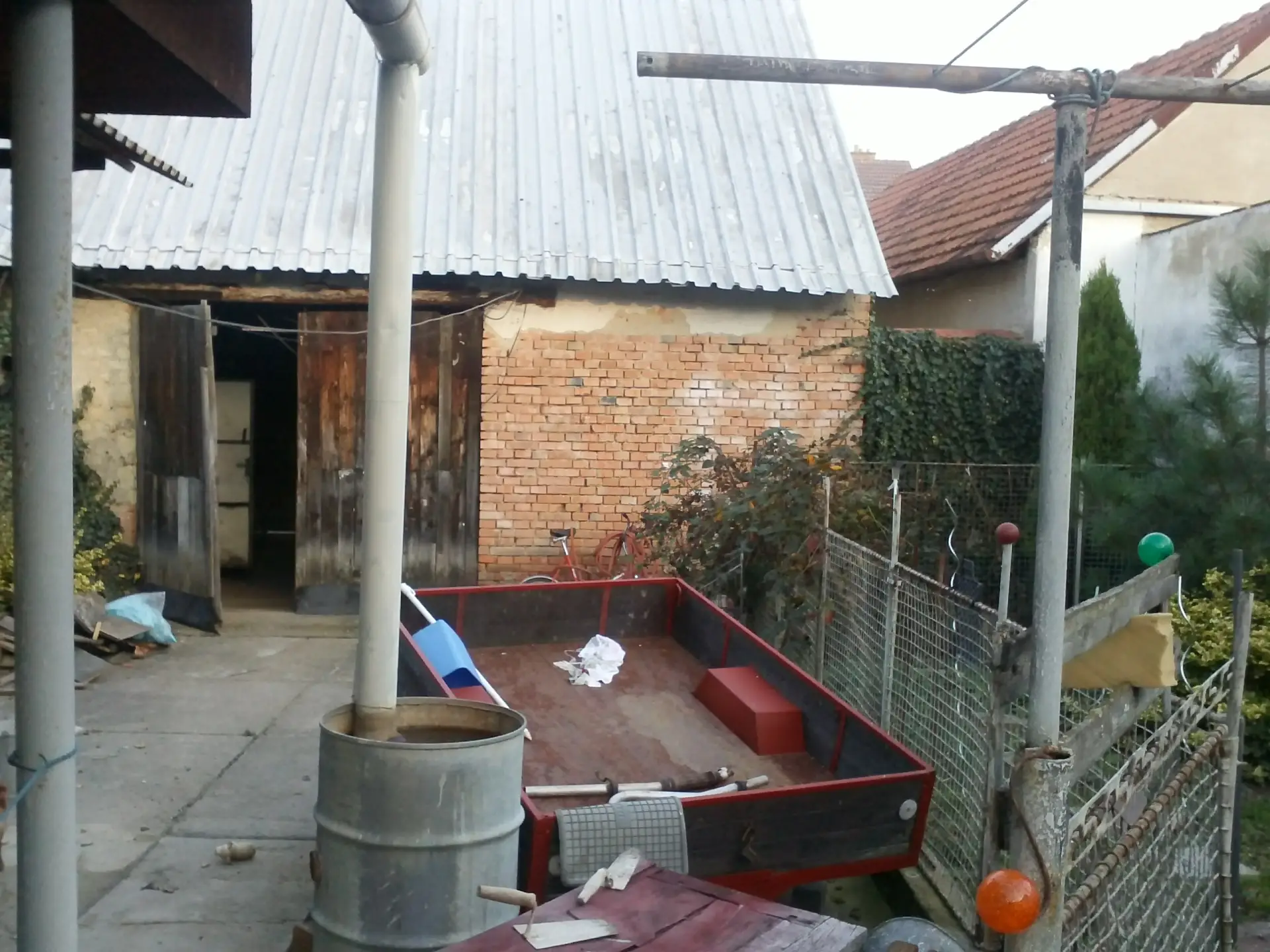 * **Prostorné zázemí:** Součástí je velká zděná **stodola s garáží** a dílnou.