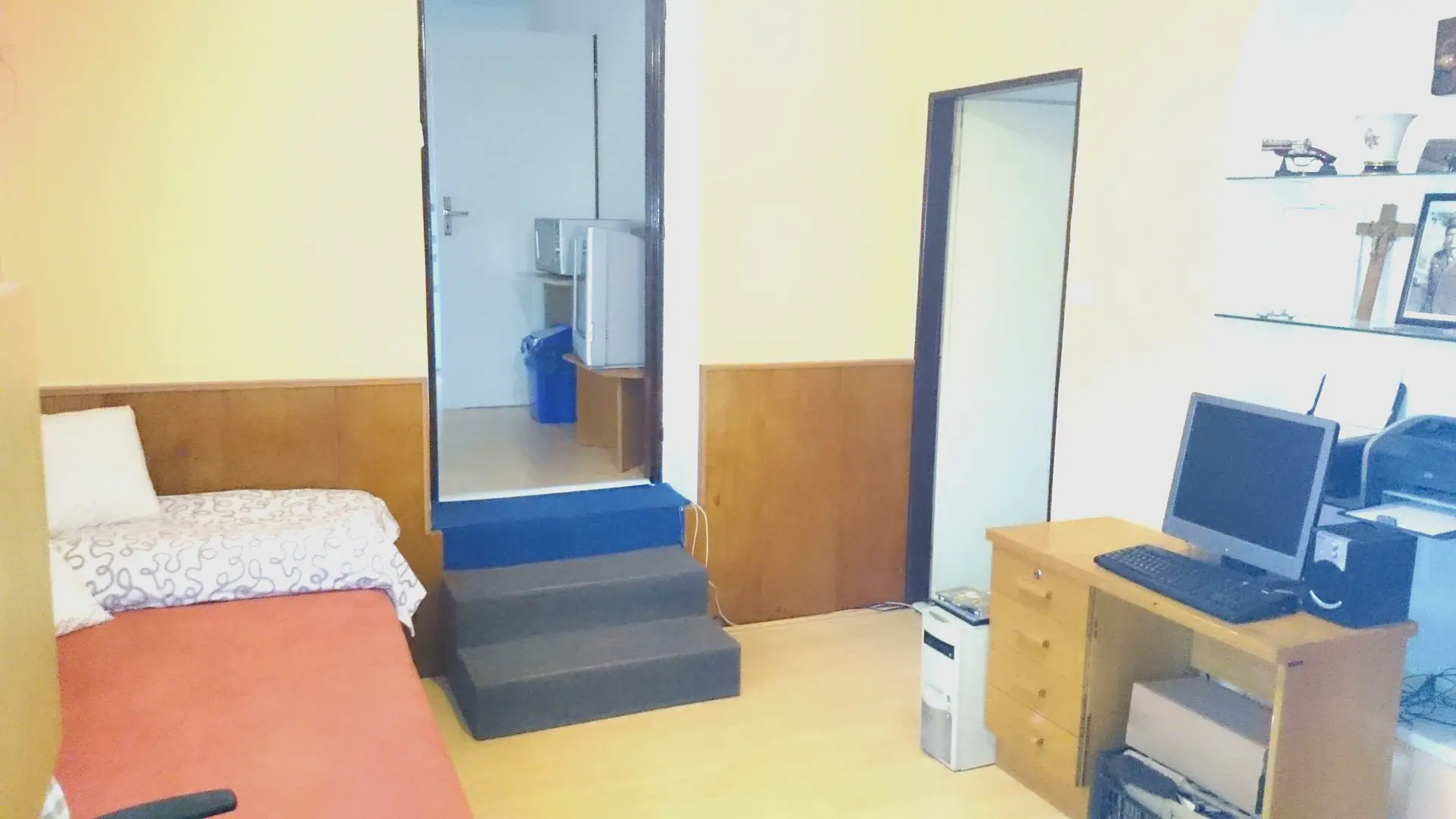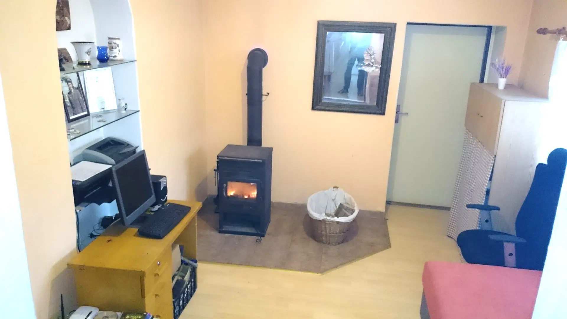 dveřmi je malá přeDsíňka, za ní následuje pokoj 12 m2 s krbovými kamny....