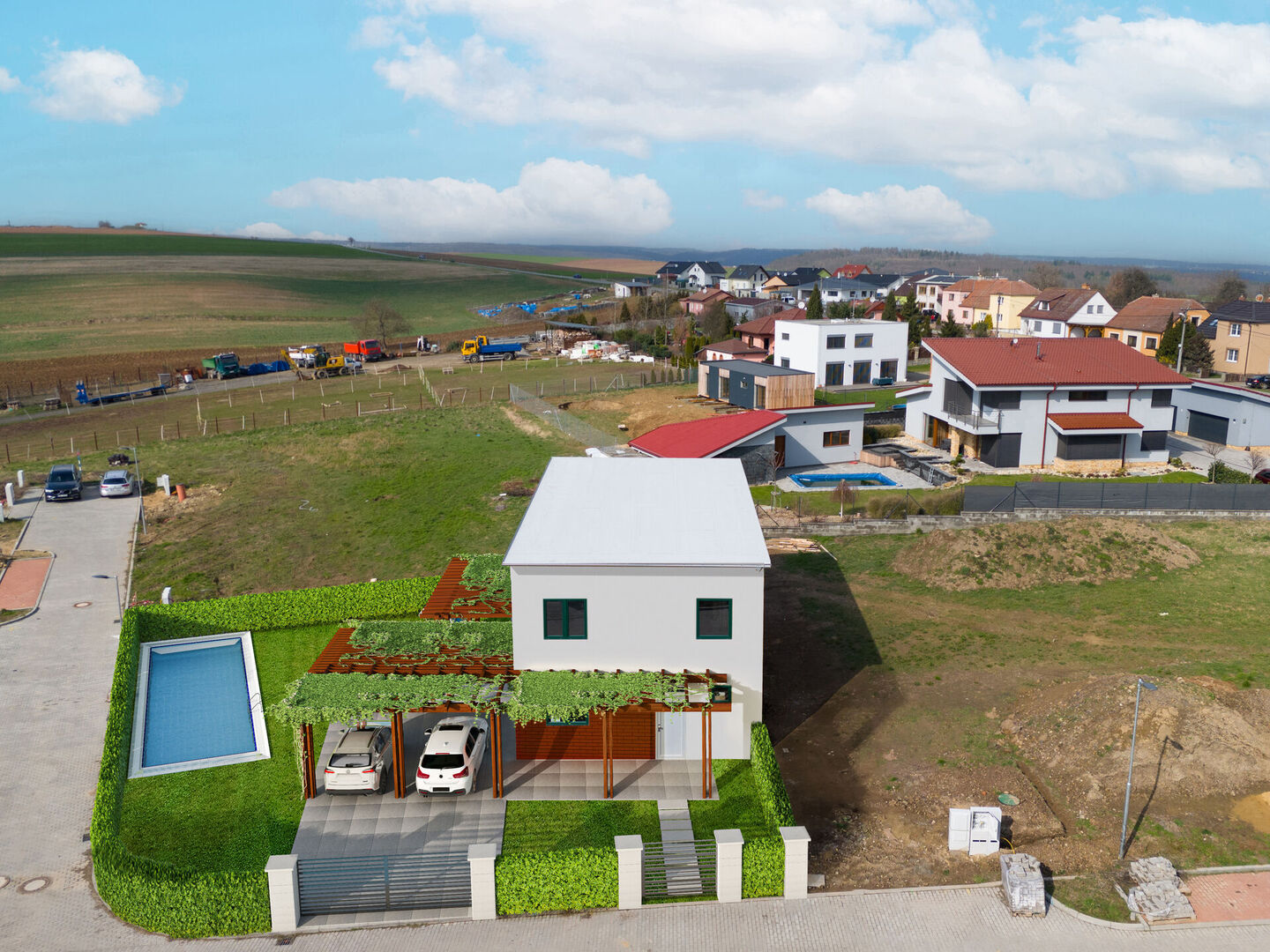 Dům bude dokončen a zkolaudován do srpna 2024. Velkou výhodou je možnost před dokončením ovlivnit a upravit použité materiály i dekory jednotlivých prvků a částí domu.