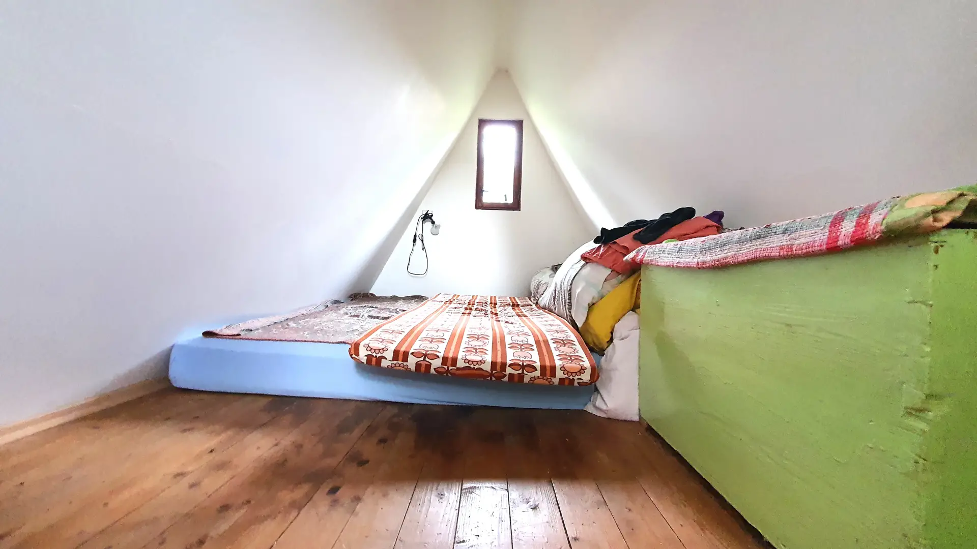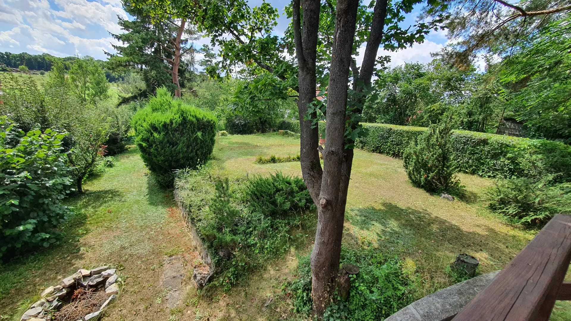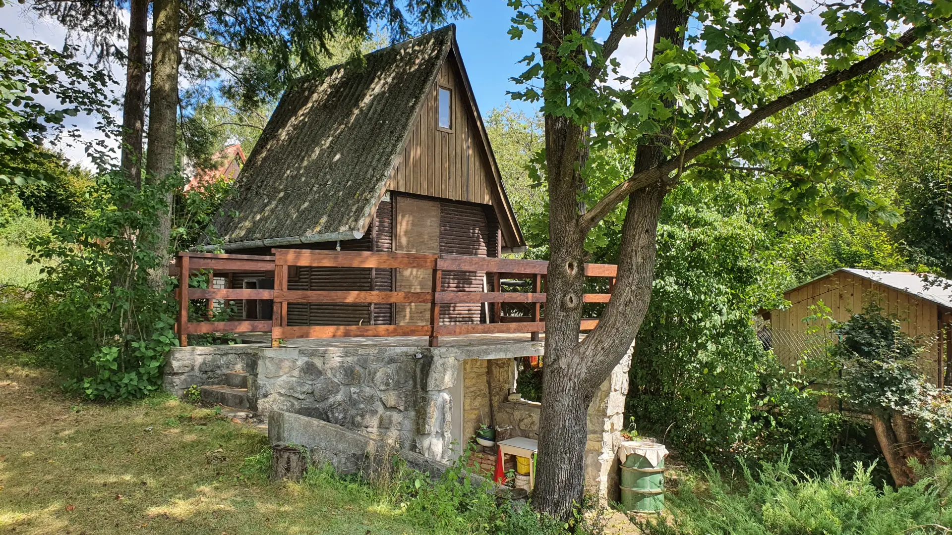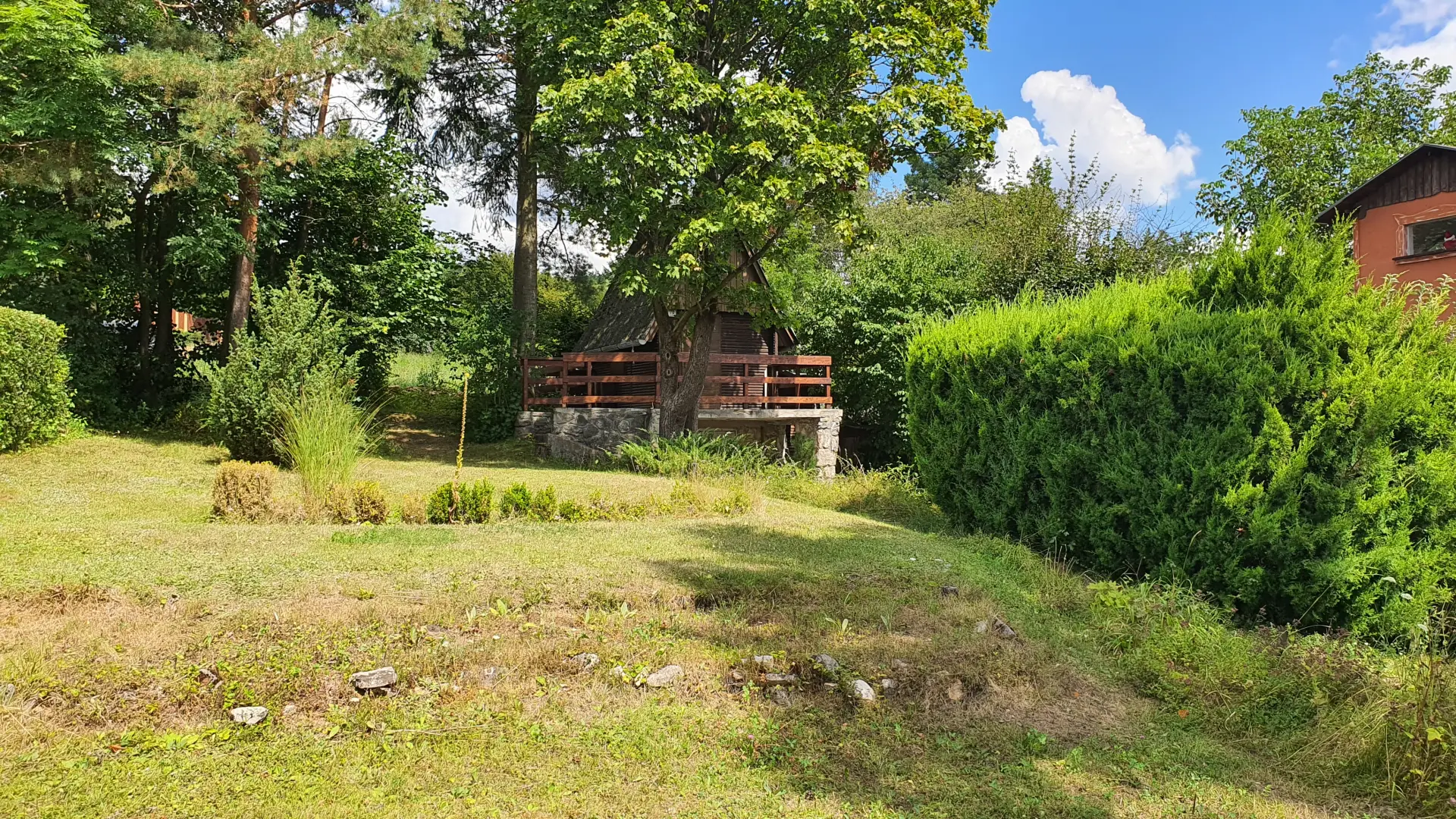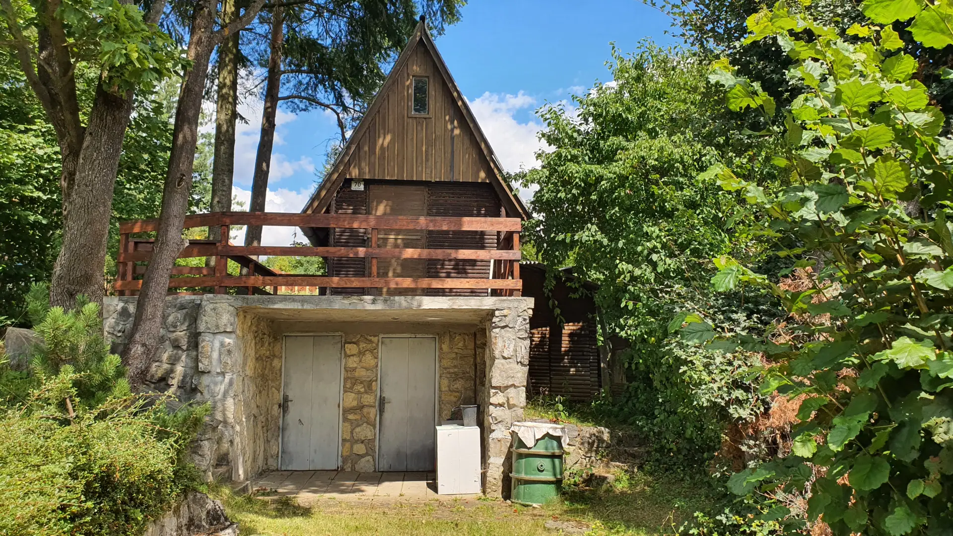 Dřevěná chatka se nachází na podsklepené kamenné podezdívce, ze které je nádherný výhled na protější farmu s pasoucími koňmi, v suterénu je v jedné místnosti suché WC svedené do jímky a ve druhé místnosti se nalézá skladový prostor. Chata disponuje zavedenou elektřinou, 230 a 380 V. Voda je pouze dešťová svedená do betonové nádrže, jak je v této oblasti obvyklé. Pozemek je mírně svažitý, ohraničený živým plotem. Velkou výhodou pozemku je umístění, je situován na okraji obce, s příjezdem po asfaltové cestě a parkováním na pozemku.