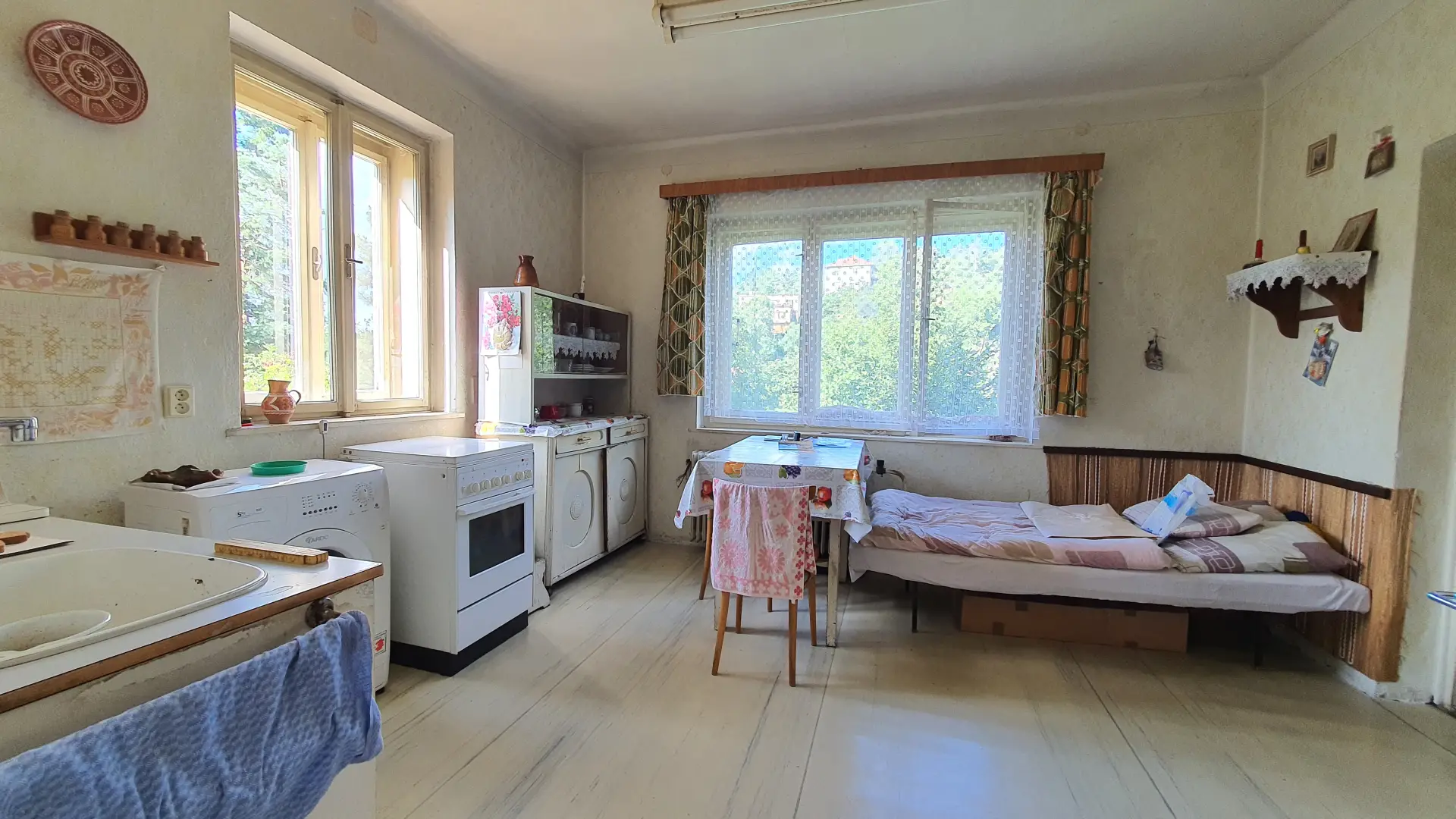 Ve výhradním zastoupení nabízíme k prodeji samostatně stojící rodinný dům 3+1 se zahradou a garáží s montážní jámou v malebné lokalitě v městyse Křtiny, okr. Blansko. Nemovitost o ZP 226 m2 je unikátní svou polohou - nachází se v klidné boční ulici poblíž centra obce s úžasným výhledem do okolí, na pozemku o CP 1120 m2 (uliční šíře 21,5 m). Dům je cihlový s kamennou podezdívkou, celý podsklepený, určený k celkové rekonstrukci. Dispozice: 1.NP - předsíň, kuchyně s kachlovými kamny, 2 pokoje, koupelna, komora, 2.NP - pokoj s lodžií, dílna, půda - možnost rozšíření o další místnost. 1.PP - prádelna, 2 sklepní místnosti, dílna, kotelna - plynový kotel + kotel na tuhá paliva. Na pozemku vlastní studna, obecní vodovod cca 30 m od pozemku, odpady svedeny do septiku (možnost napojení na obecní kanalizaci).