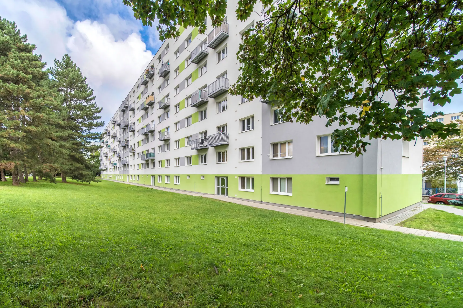 Možnost parkování před domem nebo pronájem parkovacího stání pod nákupním centrem Albert.