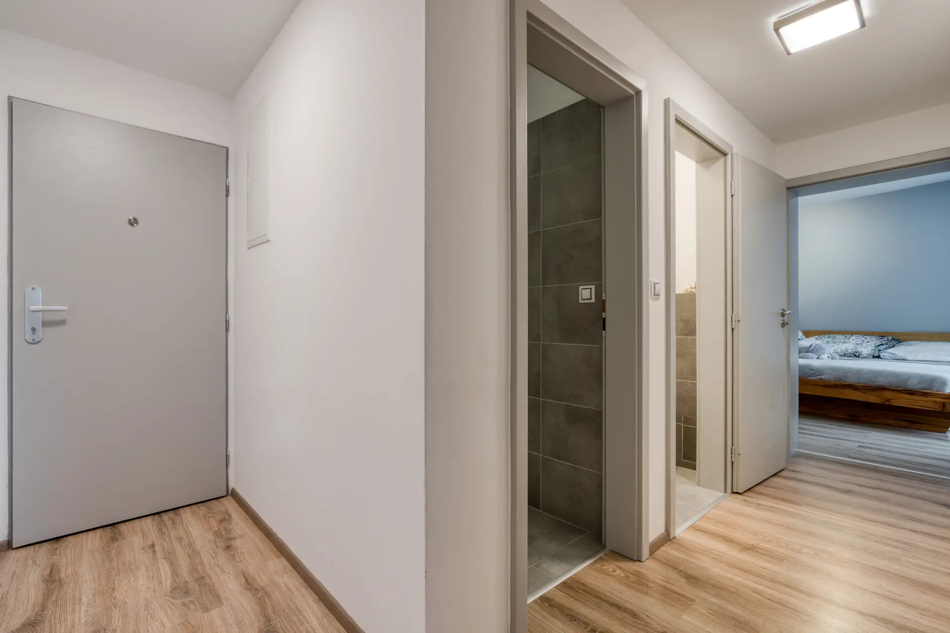 16, 83 m² s velkou vestavěnou skříní, dětský pokoj 12,53 m², vstupní chodba 6,87 m², koupelna s vanou