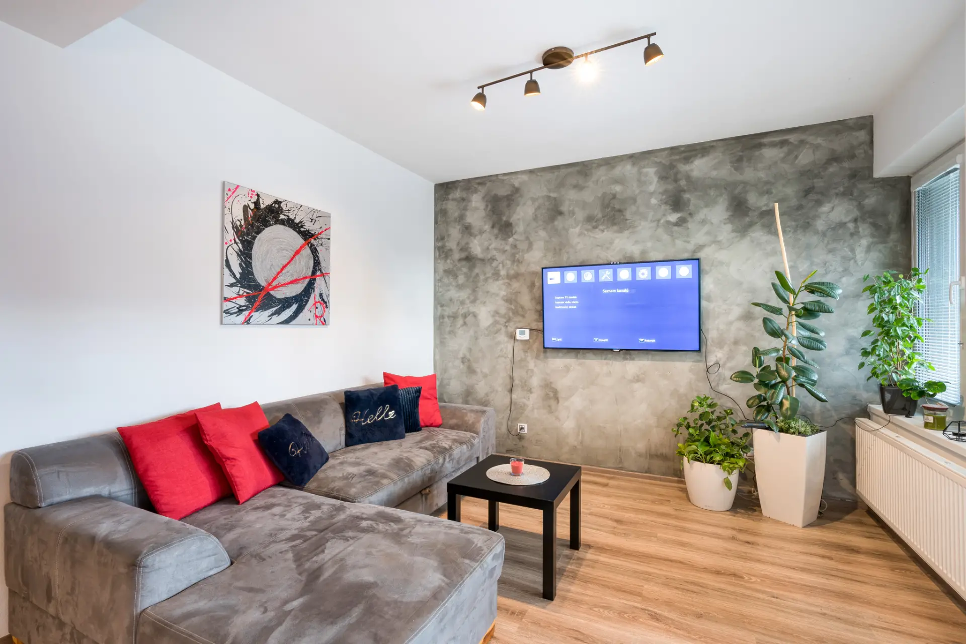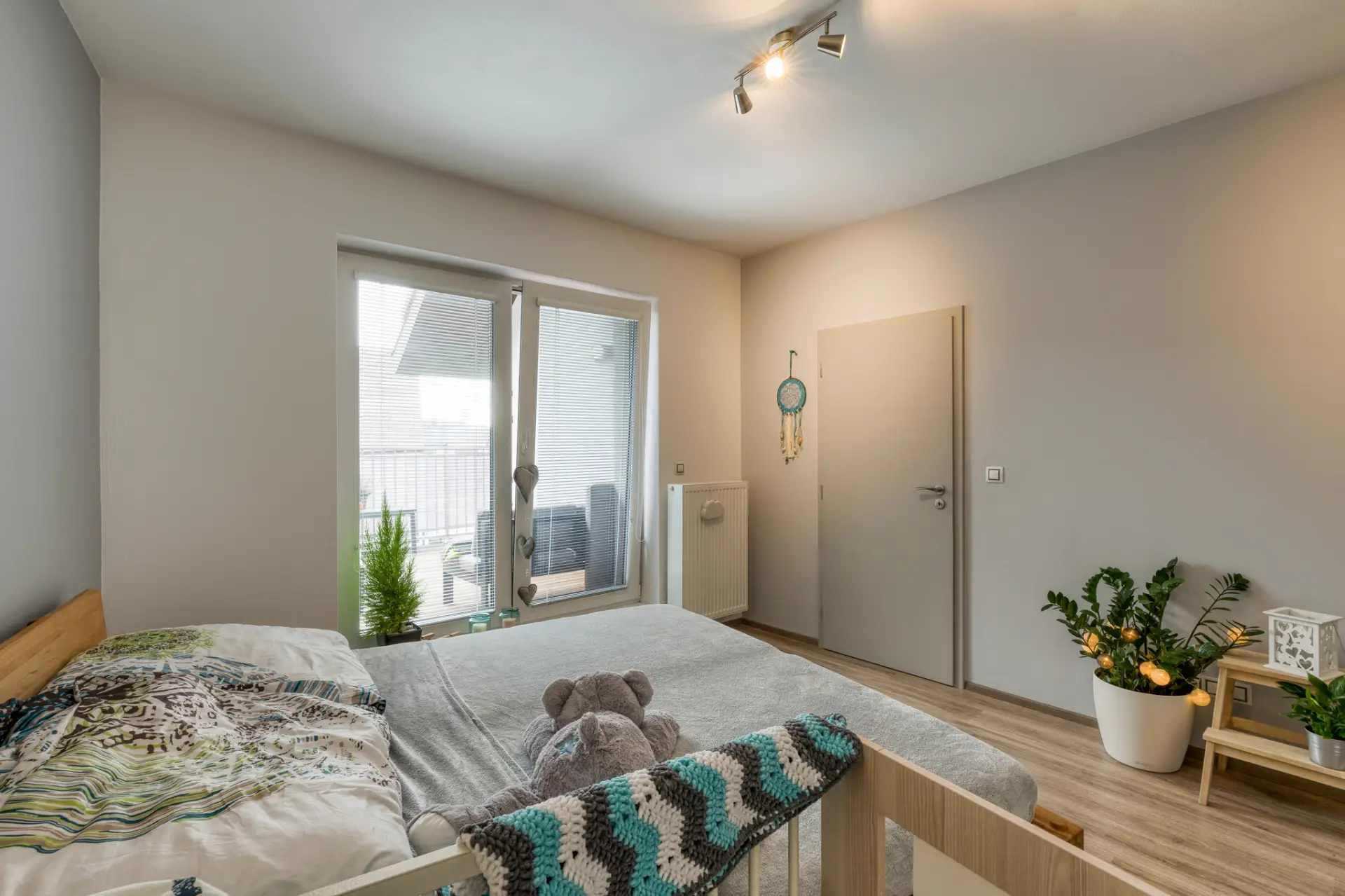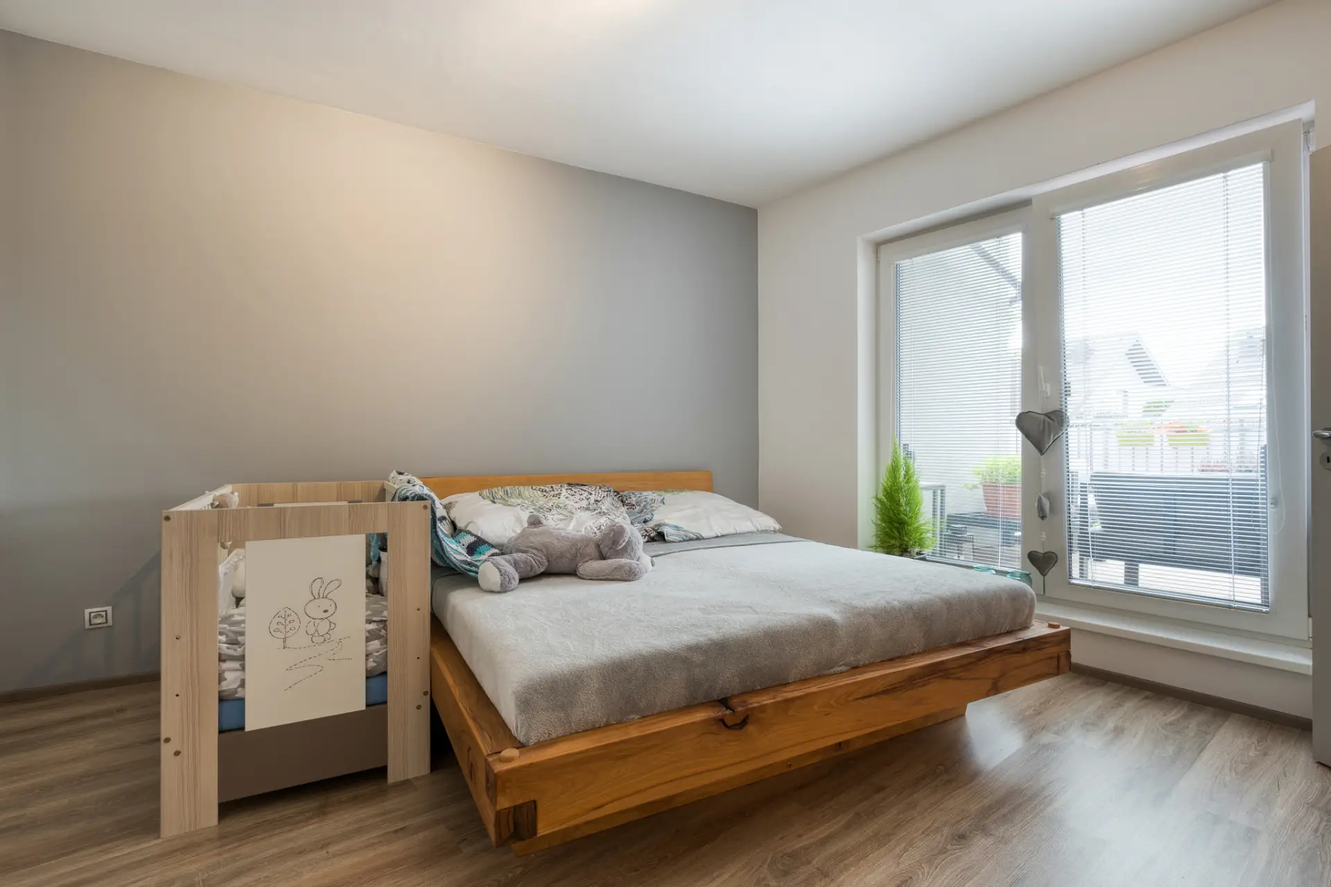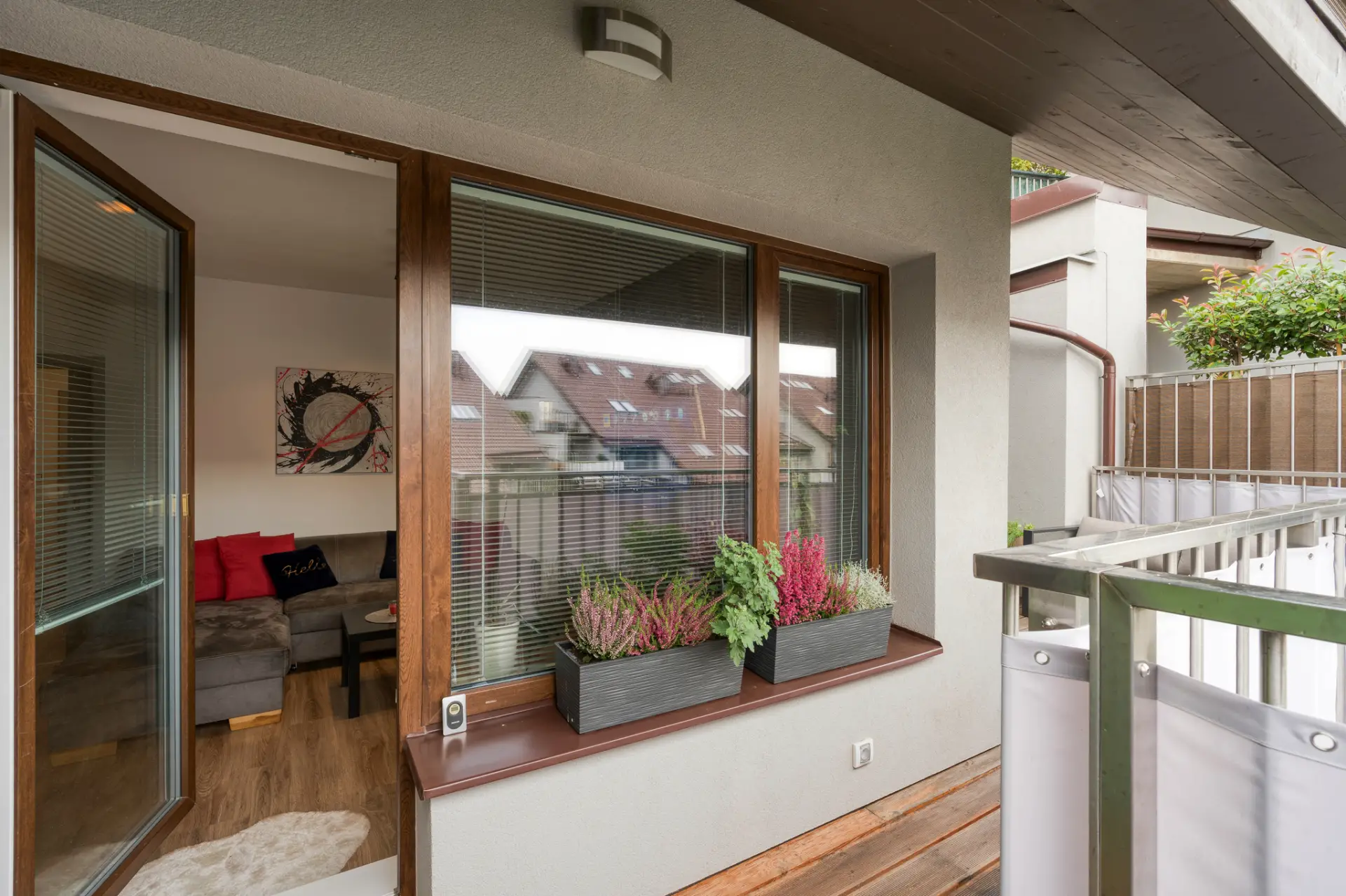 obývací pokoj s kuchyňským koutem 22,75 m², prostorná terasa 17 m² přístupná ze všech pokojů, ložnice